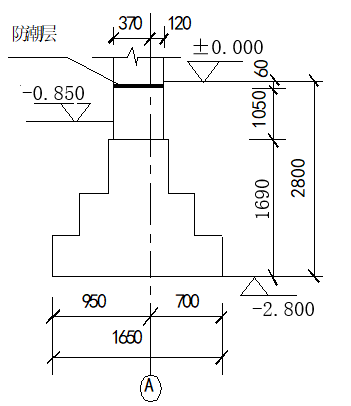 问题 更新时间2024/8/12 15:22:00 在由砖砌筑的基础墙和毛石砌筑的大放脚的基础详图中,完成: 注出大放脚高度;注出基础底面的标高;注出室外地面的标高-0.850米;室内地面标高±0.000米。 (识作图简答题) 答案 登录 注册 . 出自:国家开放大学 >> 2024年国家开放大学答案