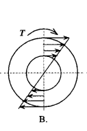 题图示空心圆轴扭转时,受扭矩T作用,其横截面切应力分布的正确表达应为